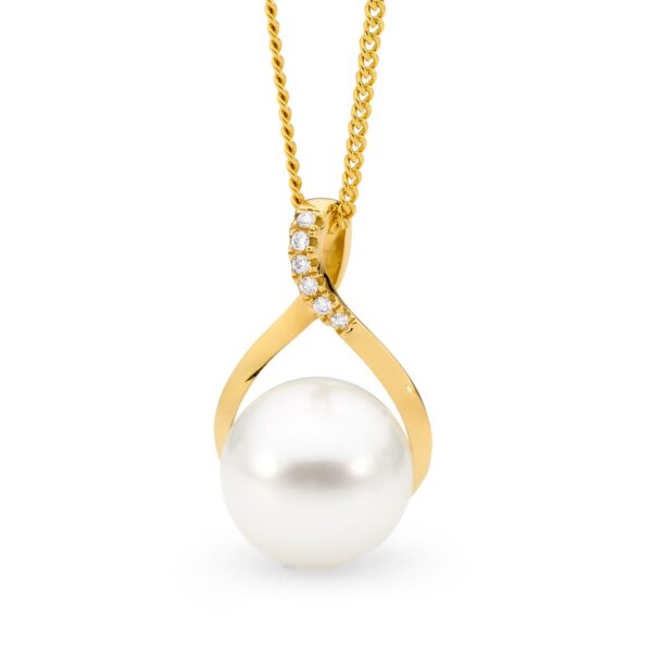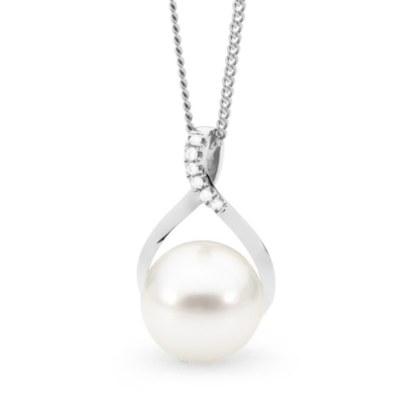 View Product: Singular Bezel Set Diamond & Pearl Pendant