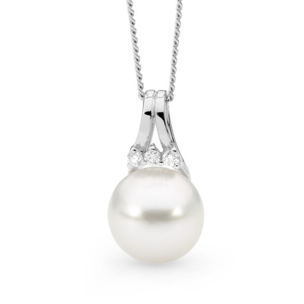 View Product: Split Bale Trio Diamond & Pearl Pendant