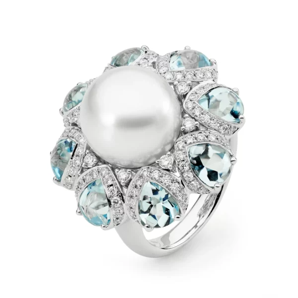 View Product: Duchess Blue Topaz Diamond and Pearl Pendant