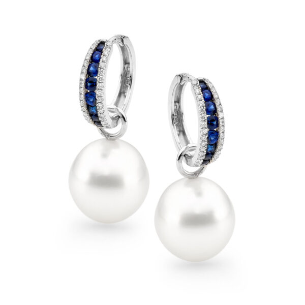 View Product: Sapphire and Diamond Detachable Pearl Huggies
