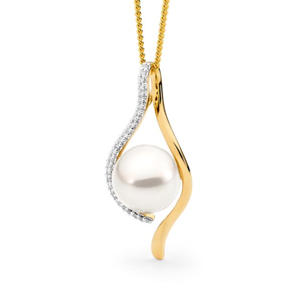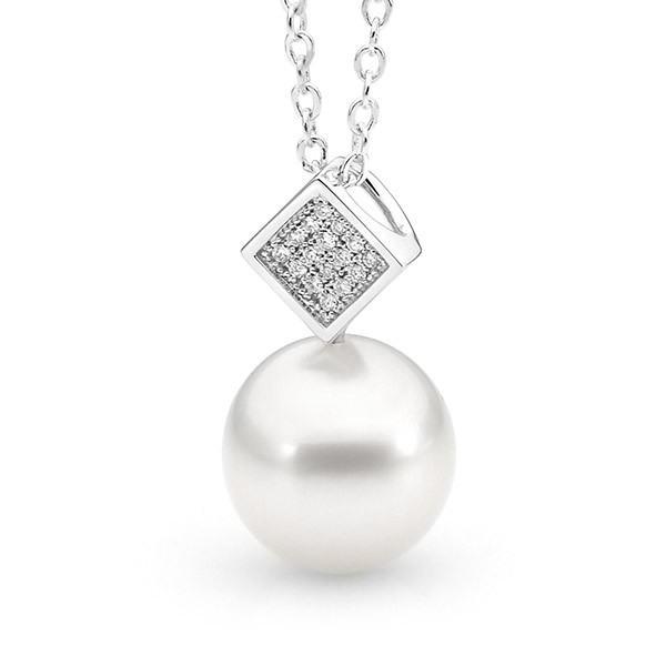 View Product: Singular Bezel Set Diamond & Pearl Pendant