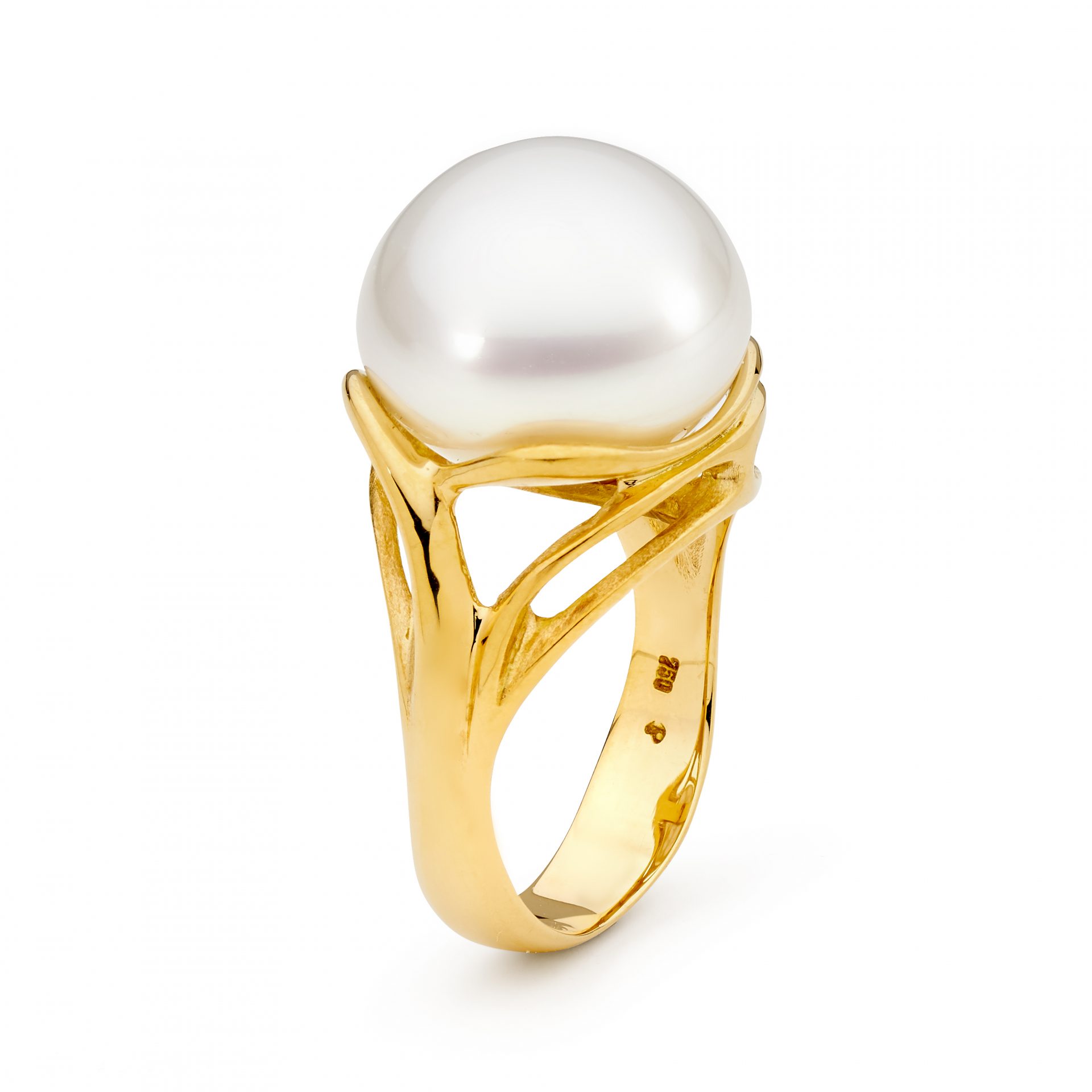 Handcrafted in 18ct yellow gold, the Baby Mangrove Ring features a lustrous 14-15mm button shaped Australian South Sea cultured pearl.