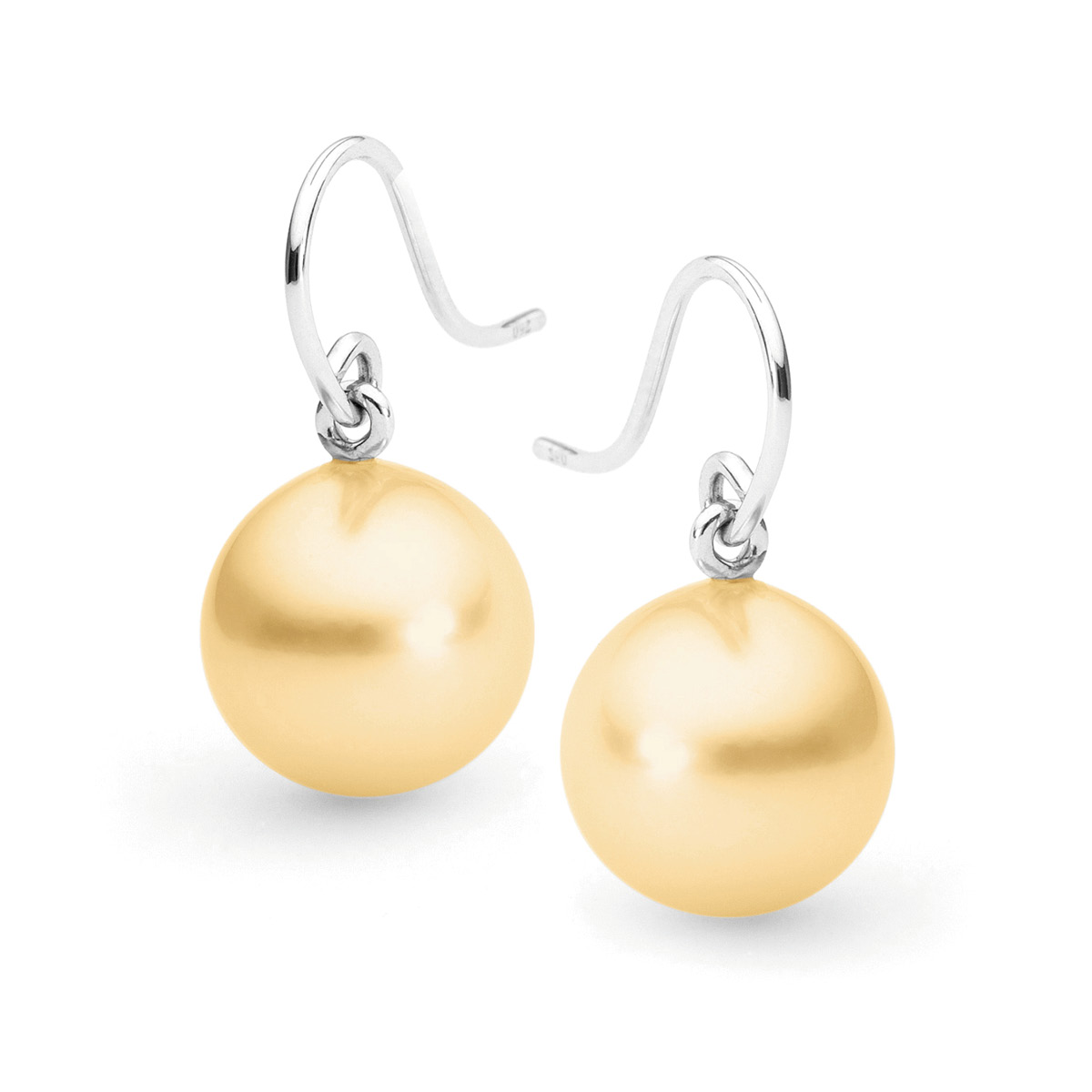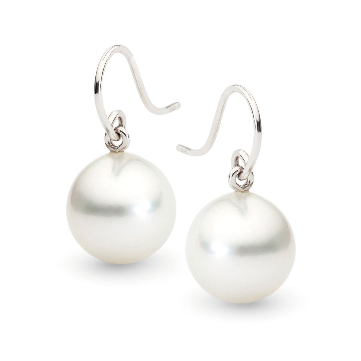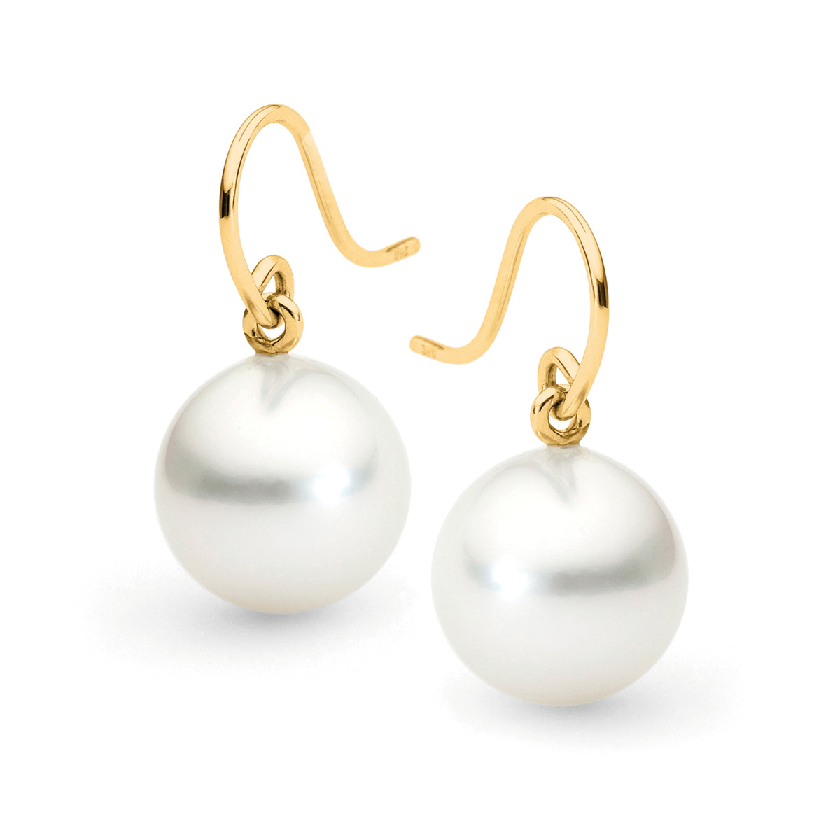 A lustrous pair of oval/drop South Sea pearl earrings in an articulated fine French hook setting. Available in 18ct yellow or white gold, with three pearl colour variations. Please select your desired pearl colour and