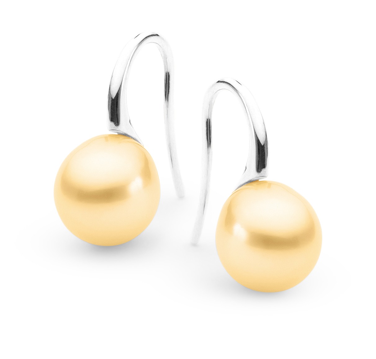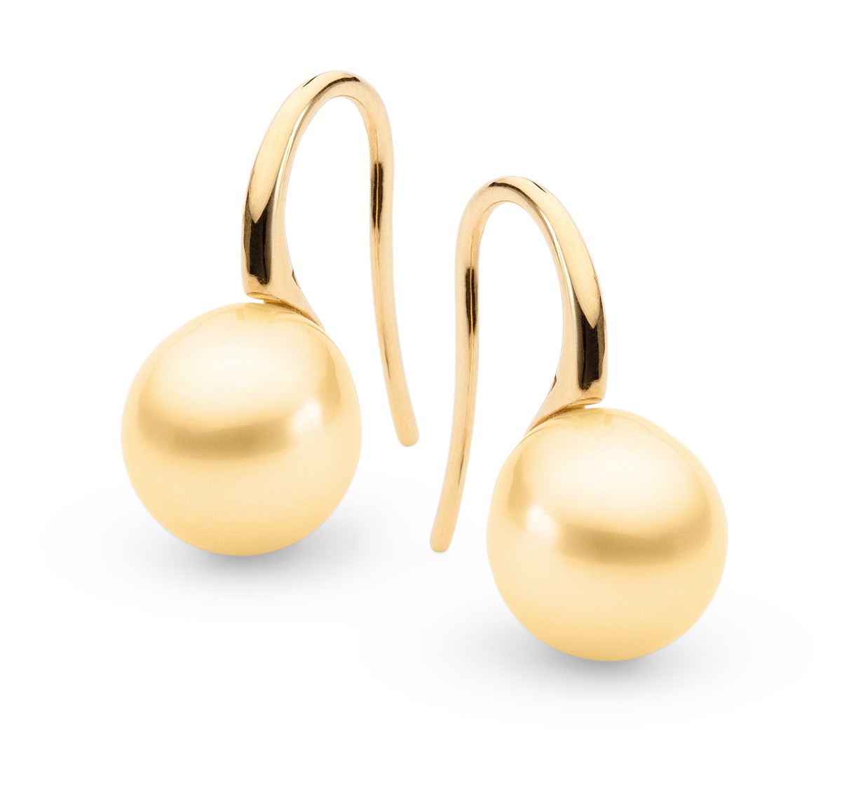 These stunning fixed French hook earrings are set in 18ct yellow or white gold and feature a pair of glowing oval/drop South Sea pearls.