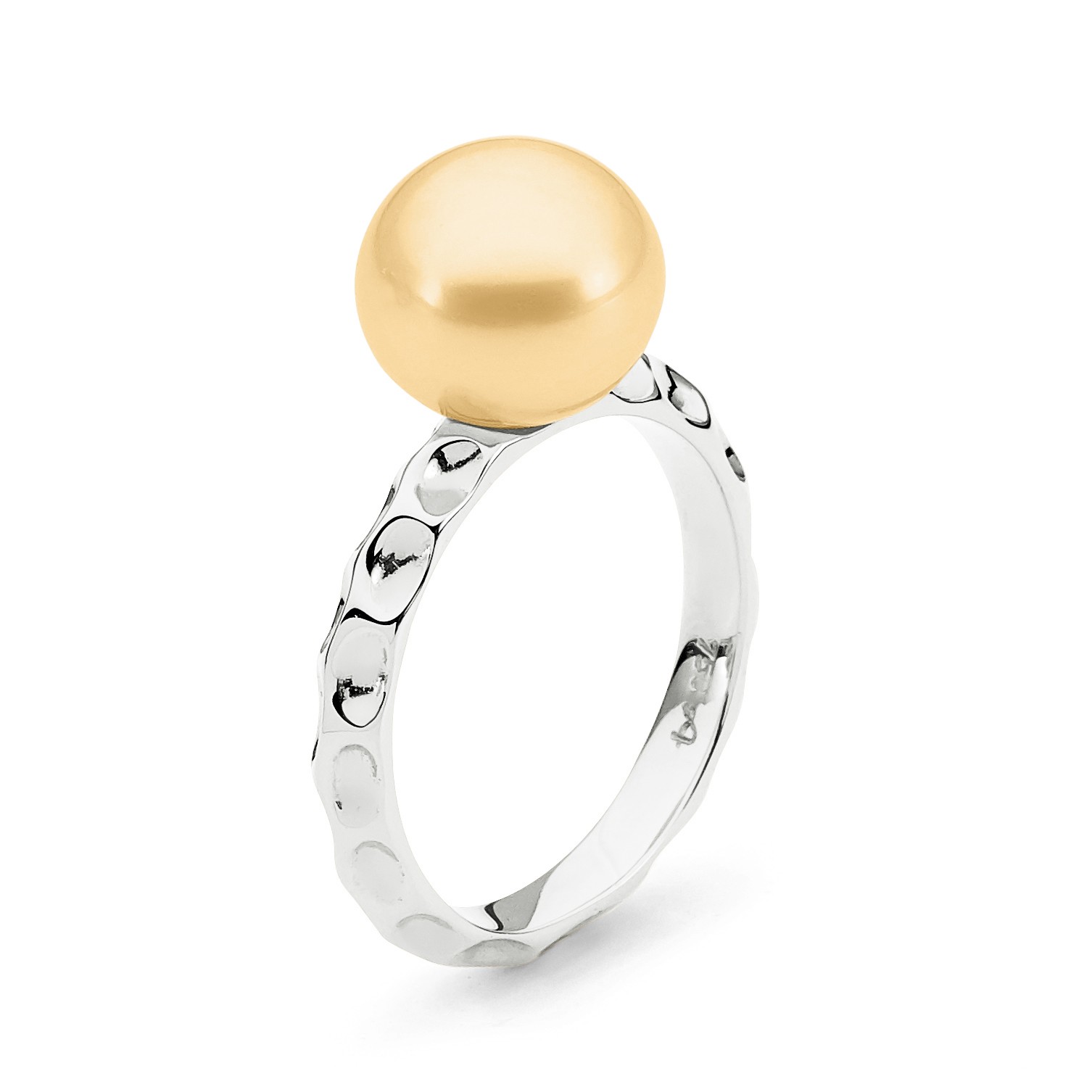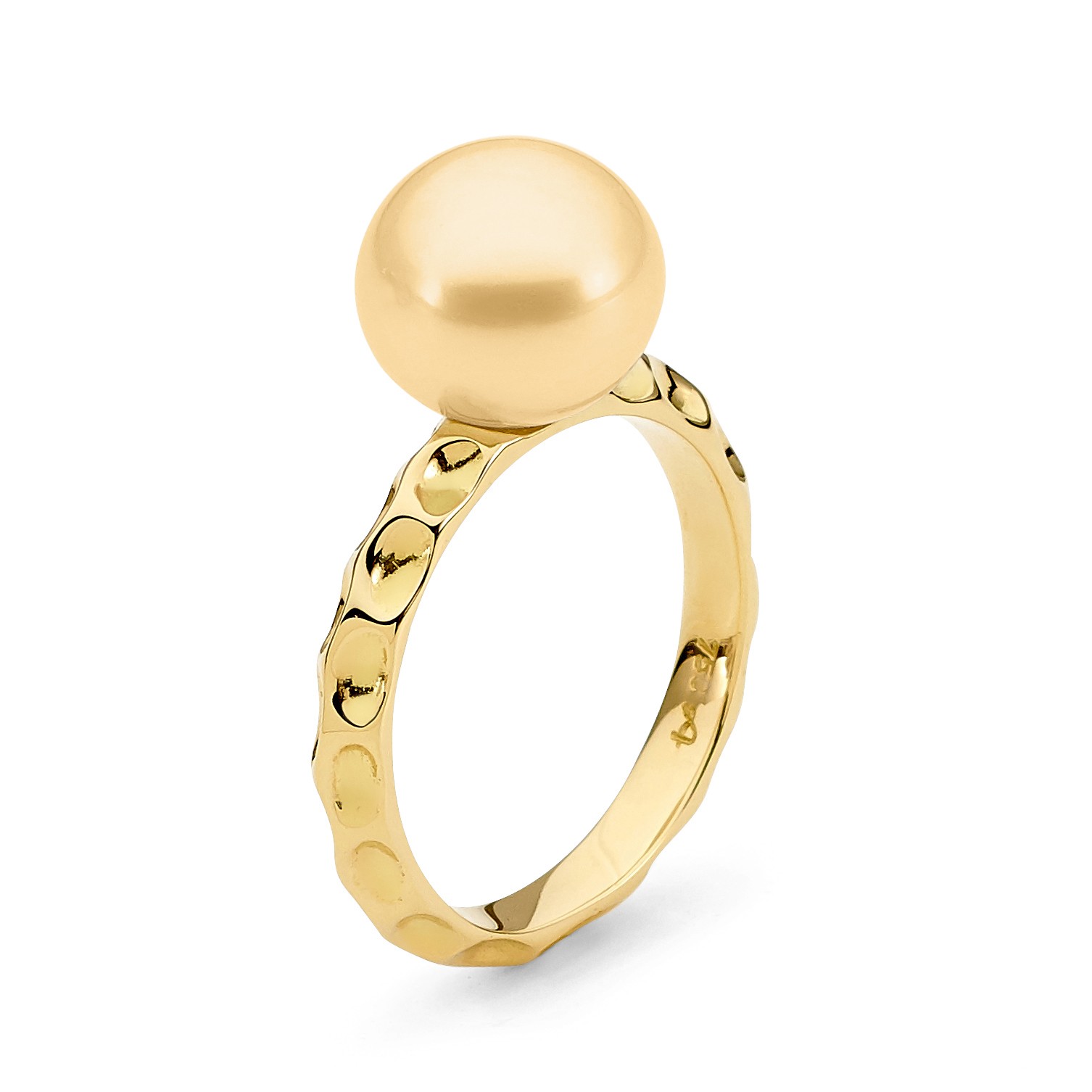 This stylish ring set in 18ct yellow or white gold and features a beautiful 10-11mm button white South Sea pearl. Price displayed applies to ring size M. If the design allows, we offer complimentary sizing