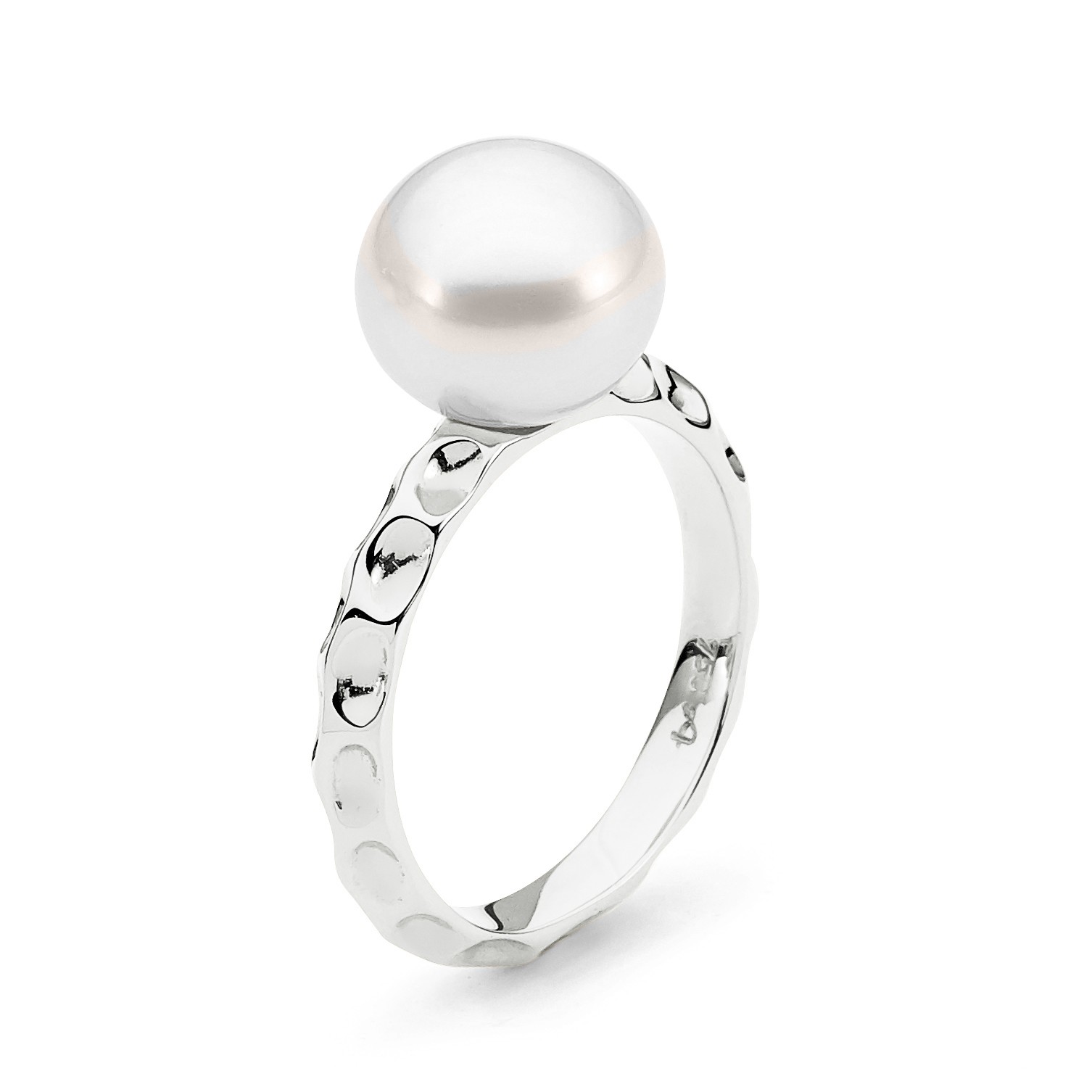 This stylish ring set in 18ct yellow or white gold and features a beautiful 10-11mm button white South Sea pearl.