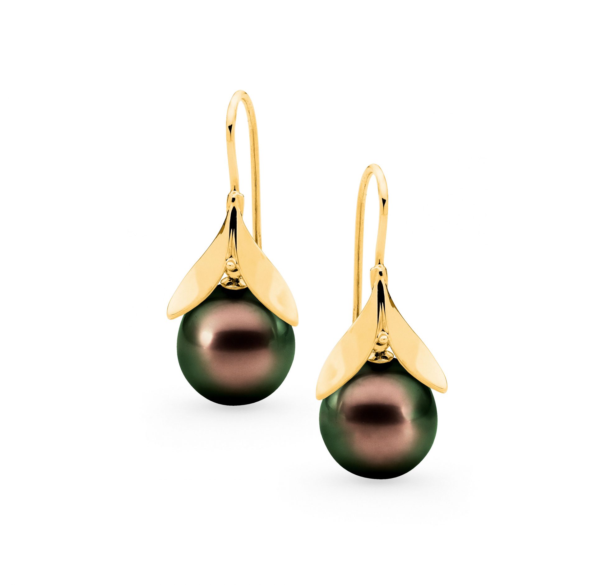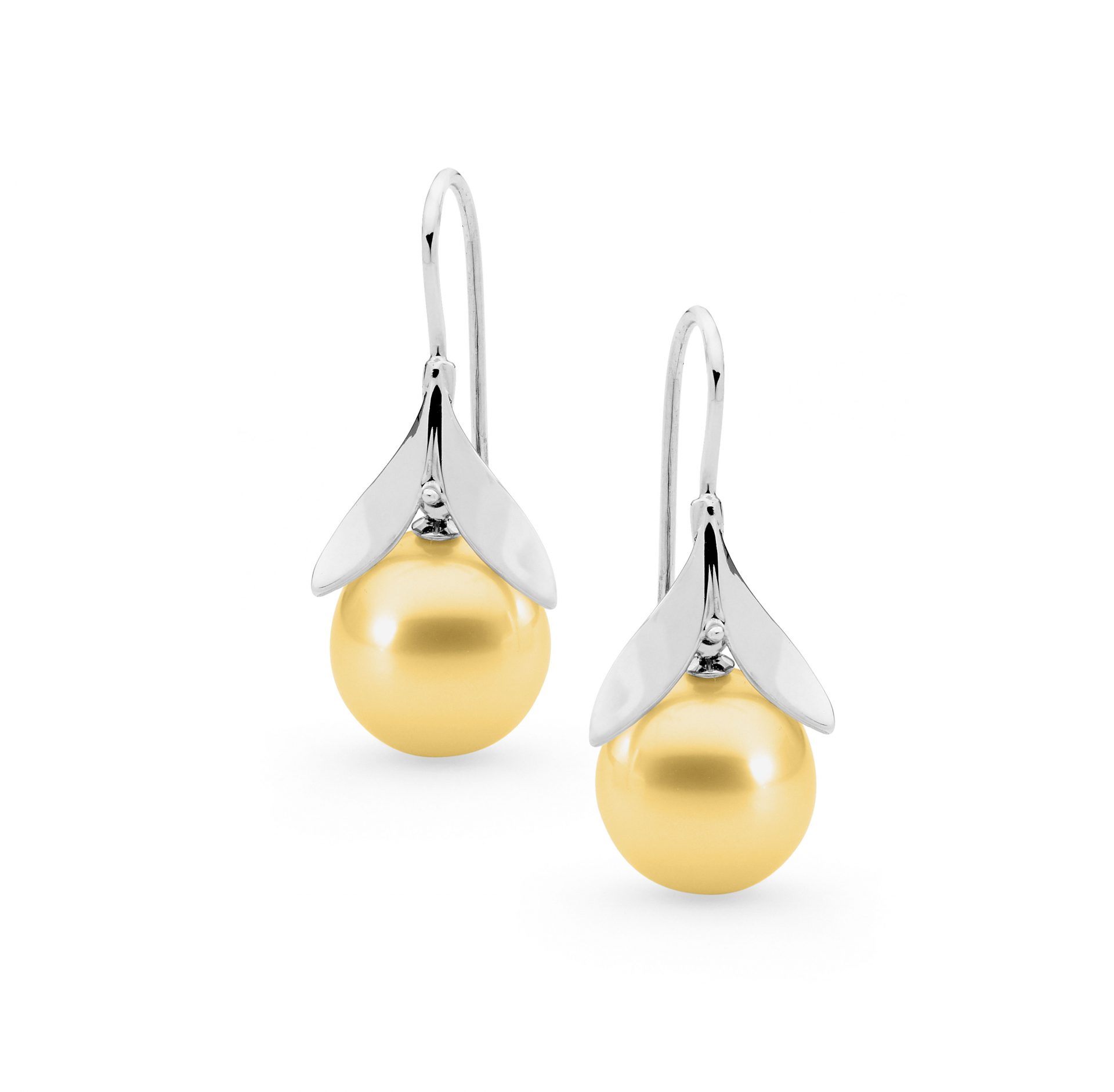 Inspired by lush foliage of the Broome wet season, the ‘Tropical Summer’ earrings are crafted in 18ct gold and feature a pair of luminous 11-12mm oval drop South Sea pearls.