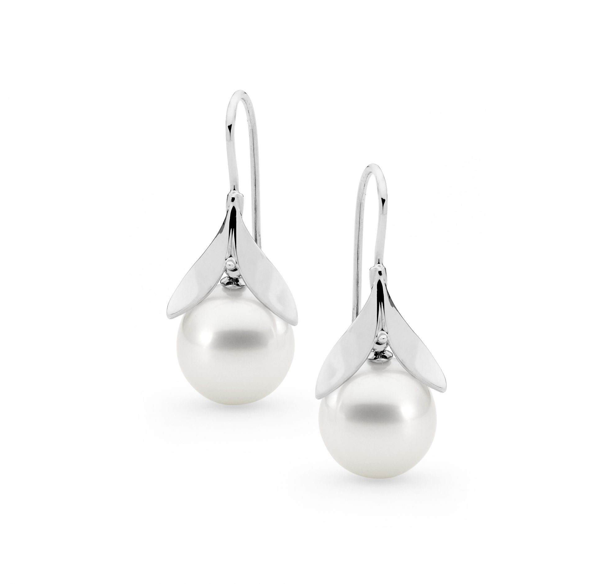 Inspired by lush foliage of the Broome wet season, the ‘Tropical Summer’ earrings are crafted in 18ct gold and feature a pair of luminous 11-12mm oval drop South Sea pearls. Available in 18ct yellow or white
