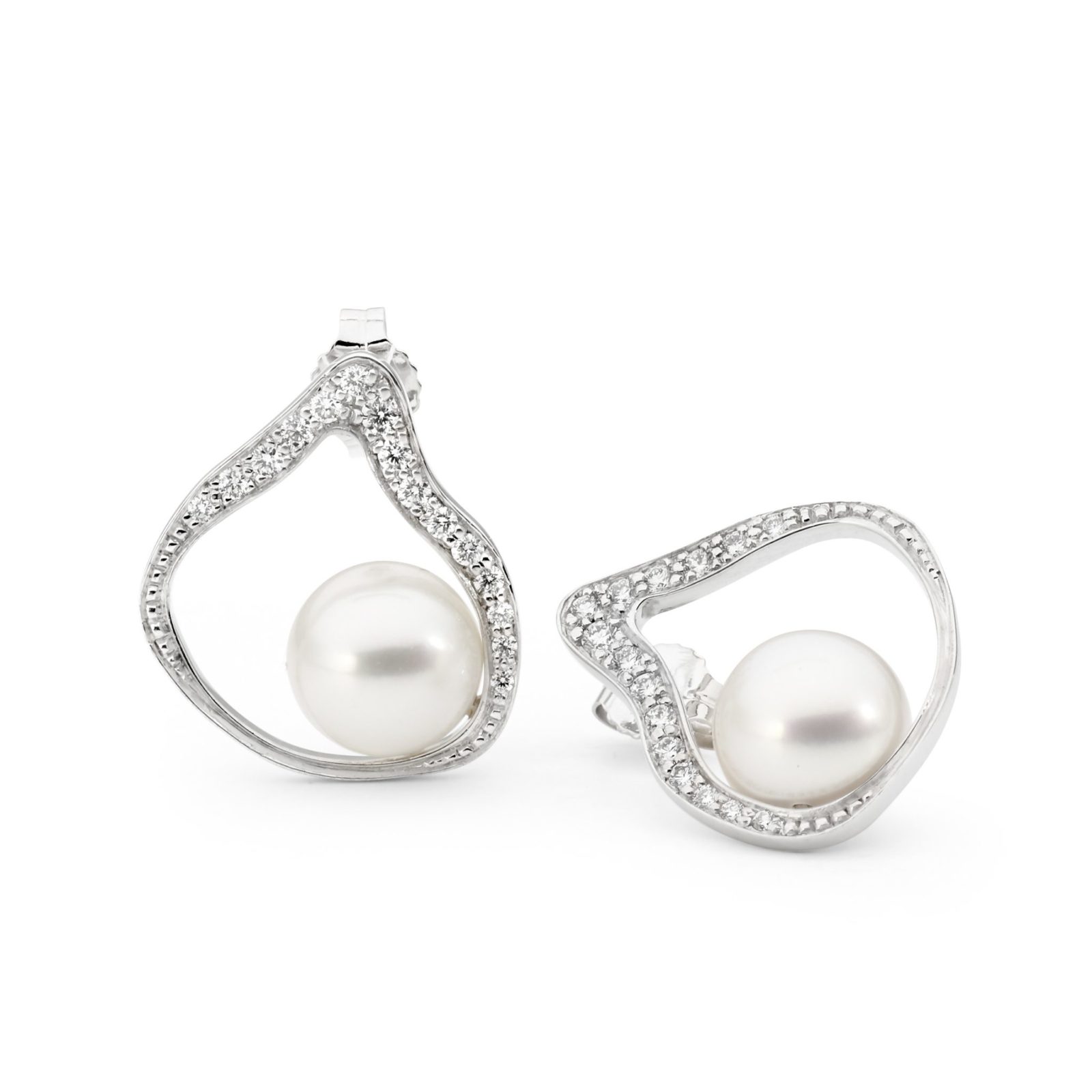 These 18ct White Gold stunning pearl earrings feature 30 diamonds with a total carat weight of 0.72ct and two 10.4mm near round Australian South Sea Pearls.